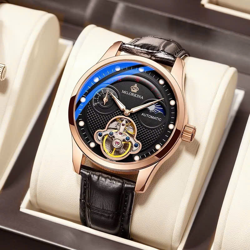 M6 - Đồng Hồ Nam Cơ Tự Động MG.ORKINA Cao Cấp Chống Nước Dây Da Mẫu Mới Chạy Full Kim Hiển Thị Lịch Ngày