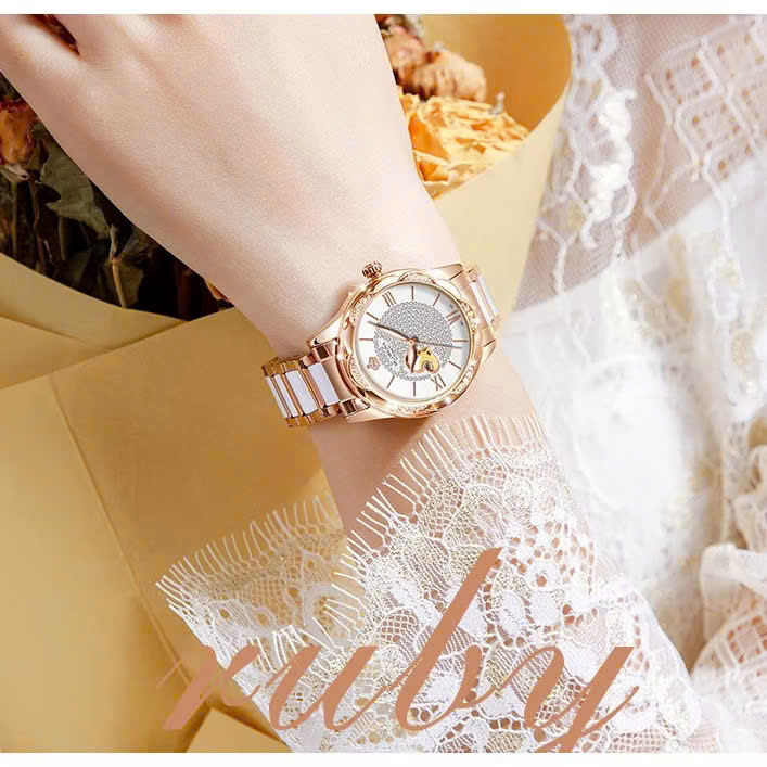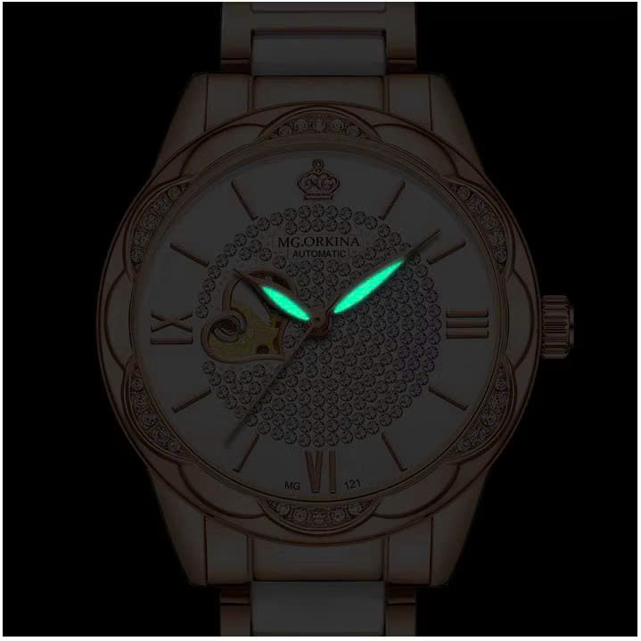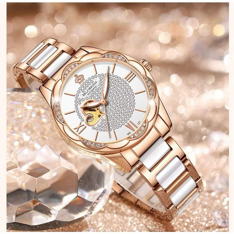 M4 - Đồng Hồ Cơ Tự Động Nữ Mg.orkina MG129 Cao Cấp Chống Nước Hình Trái Tim Đính Đá Mẫu Mới Năm 2023